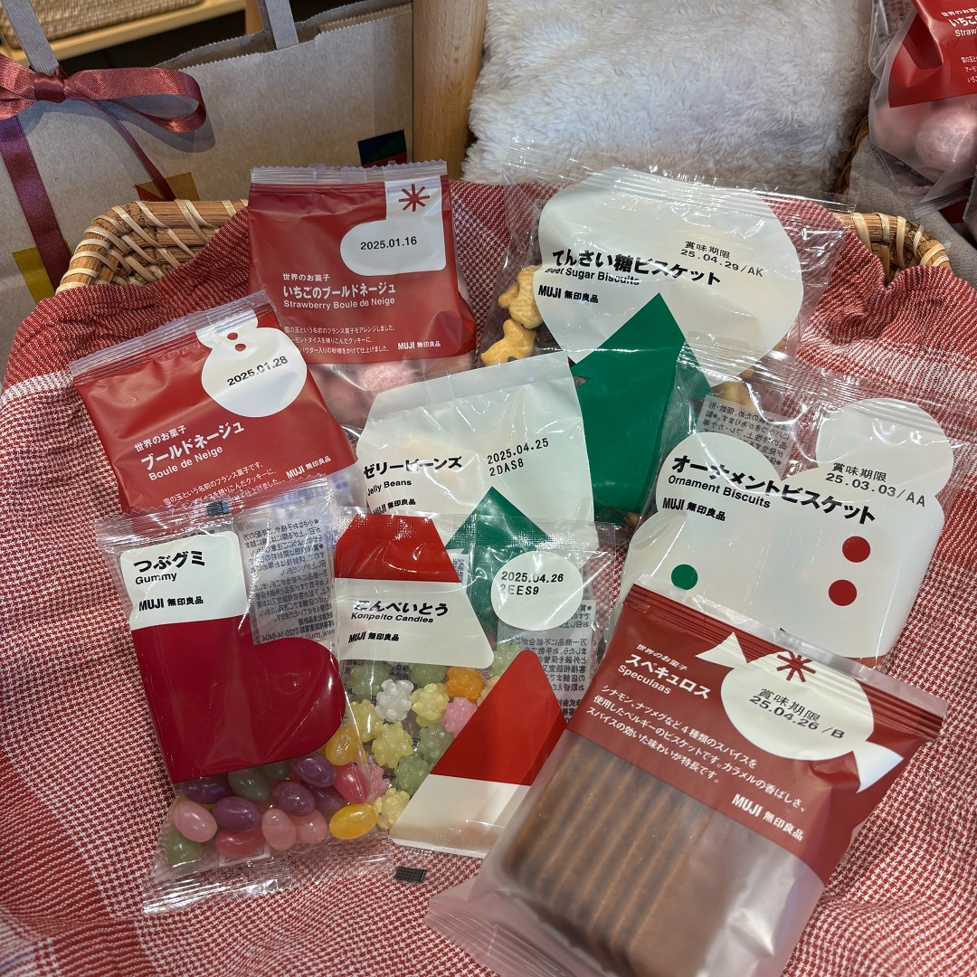 無印良品では、クリスマスのデコレーションにオススメのカラフルお菓子がたくさんあります。
