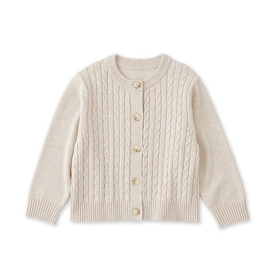 キッズ 洗えるニットクルーネックカーディガン キッズ130・ライトベージュ