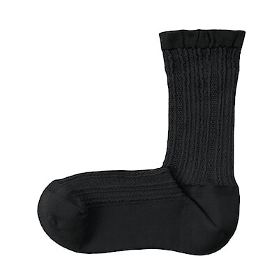 履き口部分の締め付け感を少なくしました。なめらかな肌触りで透かしもようが軽やかな靴下です。