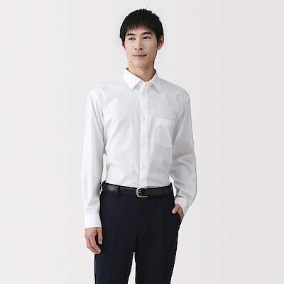紳士 ノンアイロンセミワイドカラー長袖シャツ 紳士M・白