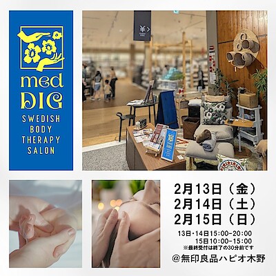 【ハピオ木野】2月13日(土)・14日(日)・15日(月)「スウェーデン式ボディケアサロン」出店のお知らせ