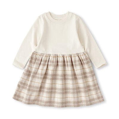 ベビー 両面起毛フランネル プルオーバー長袖ワンピース