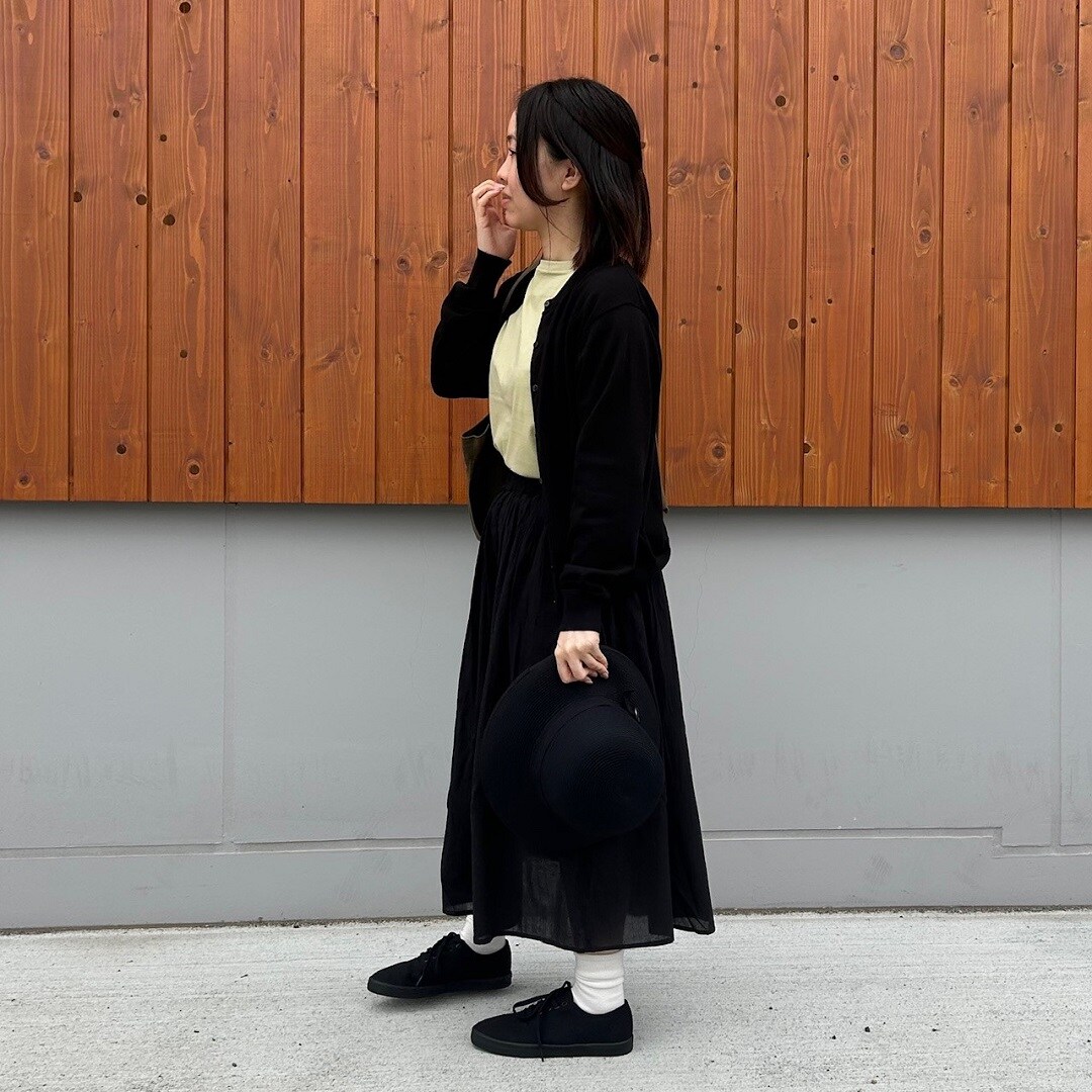 婦人 UVカット強撚コットンクルーネックカーディガン 婦人M・黒