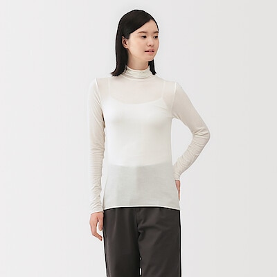 やわらかな肌触りと程よい透け感か特徴で、季節の重ね着にも、一枚着としても取り入れかすいアイテムです。