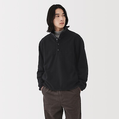 紳士 素材に還るフリースプルオーバー 紳士XL・黒
