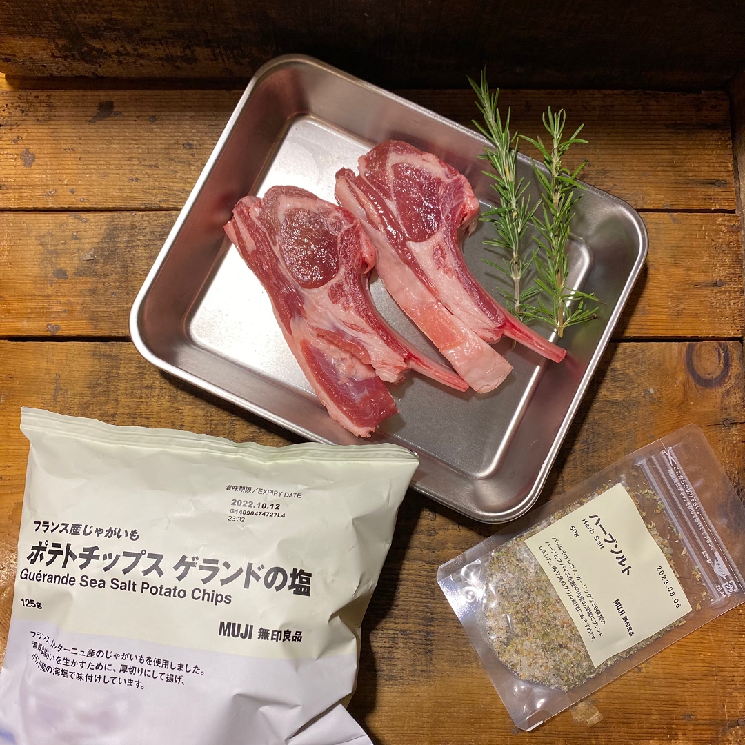 2.ラム肉の表面に軽くハーブソルトをまぶす。