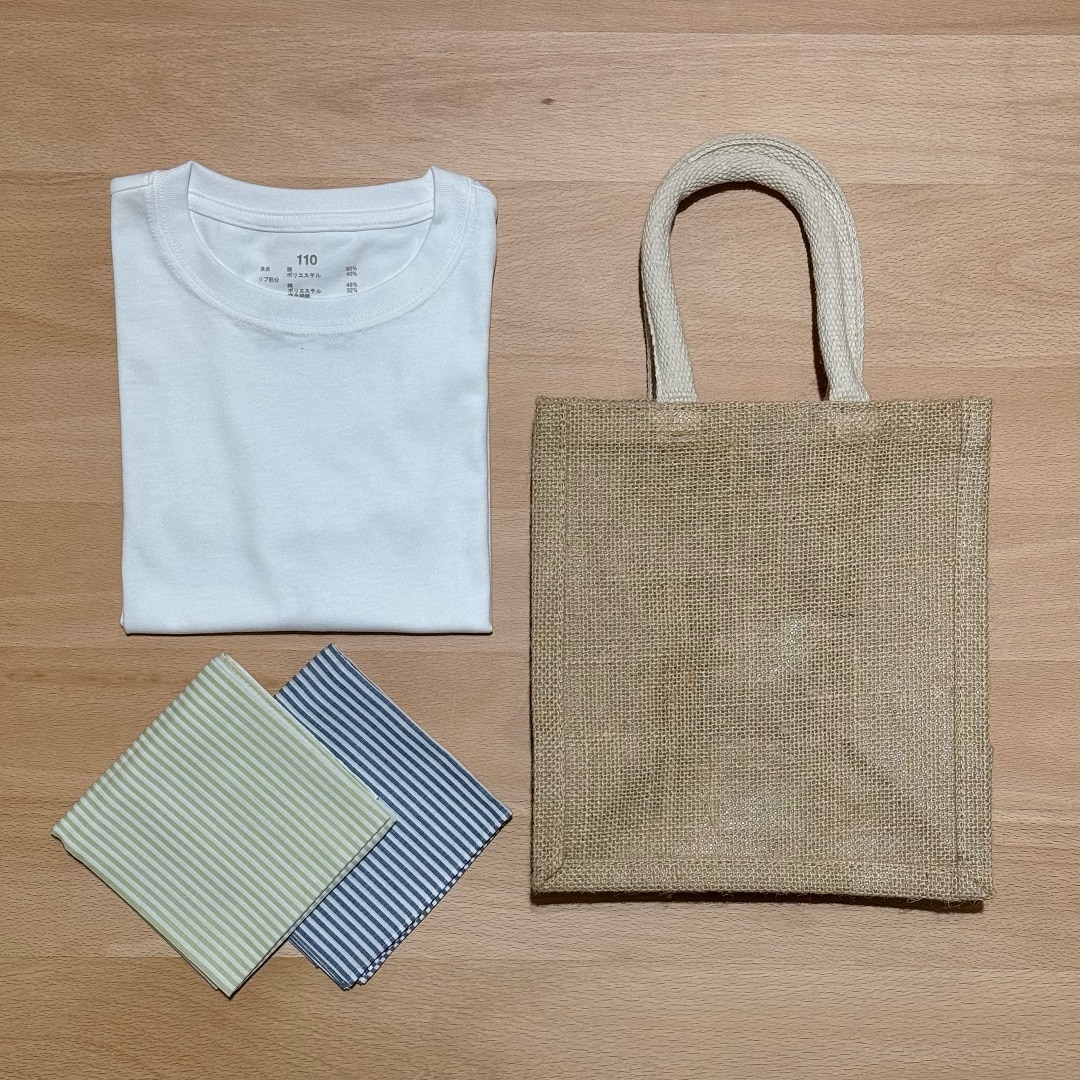 今回のワークショップでは、イラストや写真を、無印良品のTシャツや鞄、布小物などにプリントして、オリジナルのアイテムを作る体験ができます。
