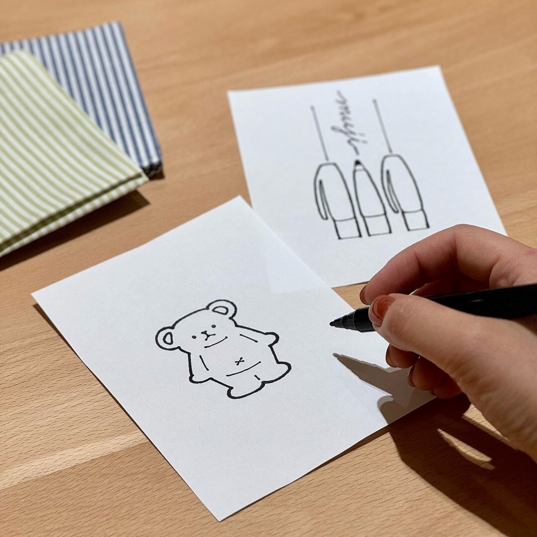 事前に、ご自宅でイラストを描いてお持ち頂く際は、白い紙に太い油性ペン( 1mm以上 )で描いたものをご準備下さい。