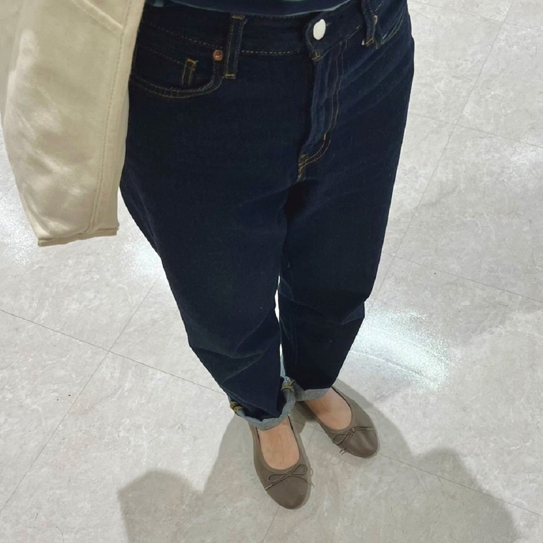 デニムレギュラーパンツ 股下72 ブルー 婦人24(61cm)・ダークネイビー