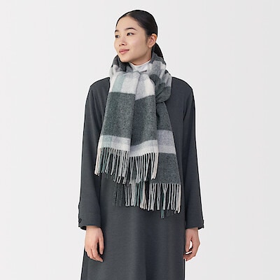 朝晩の肌寒さ対策に大判のストールを合わせています。