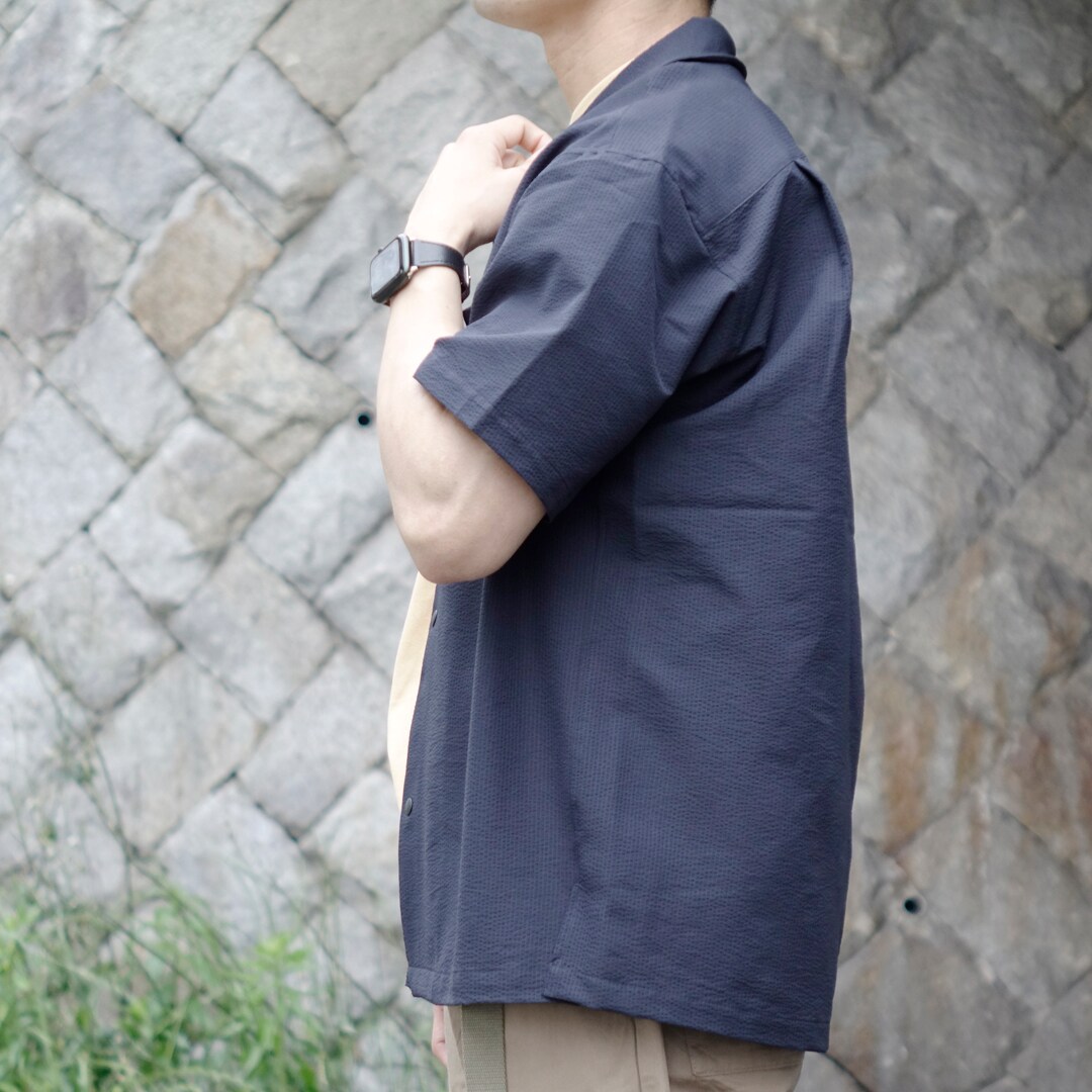 風を通すストレッチサッカーオープンカラー半袖シャツ