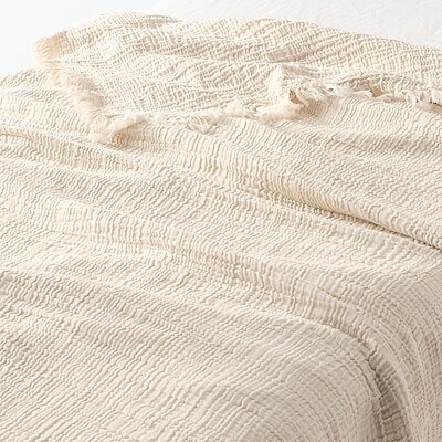 羽織ったりひざ掛けのように使ったり、サイズがシングル(140×200)とダブル(180×200)があるので、ソファやベッドにかけてもポイントになっておしゃれです。