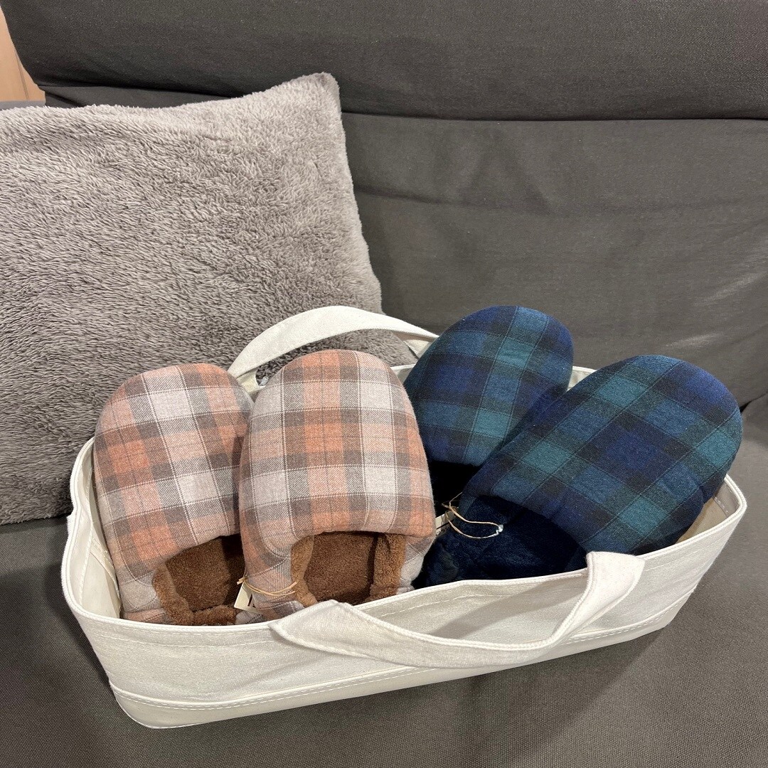 オレンジチェック、ブラックウォッチのルームシューズです。