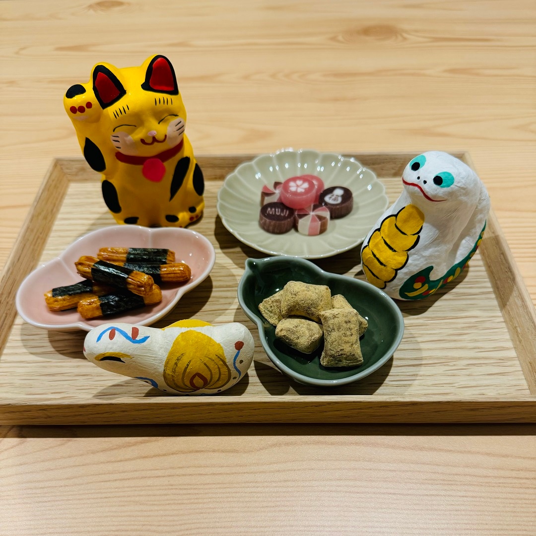 お正月にぴったりな珍味や懐かしい駄菓子、お正月限定のお菓子も取りそろえています。