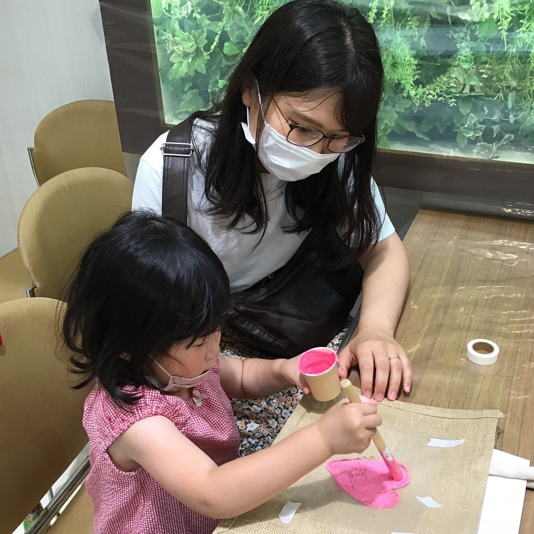 ステンシルでオリジナルジュートマイバッグを作るワークショップを行いました。