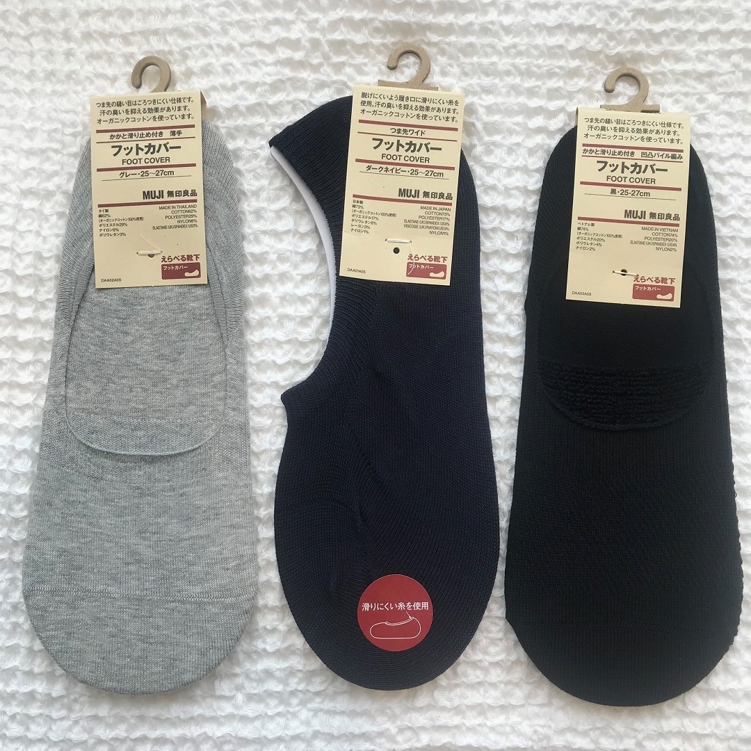 フットカバーのお悩みと言えば、靴の中で脱げて丸まってしまう。つま先が狭くてきつく感じてしまう。などがありますが、無印良品のフットカバーは、かかとにすべり止めがついている物や履き口に滑りにくい糸を使用することで、脱げにくくなっています。