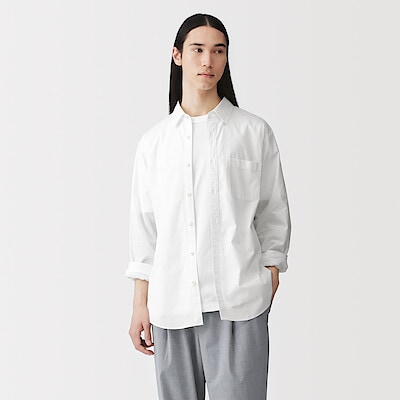 紳士 洗いざらしブロード長袖シャツ 紳士XS・白