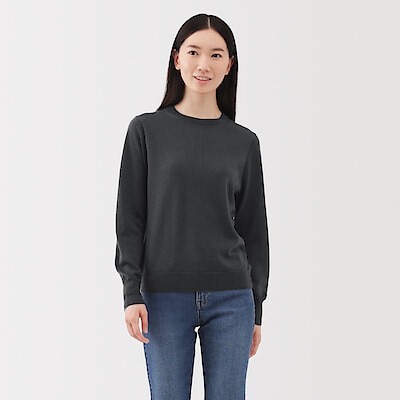 婦人 洗えるウールハイゲージクルーネックセーター 婦人XS・ダークグレー