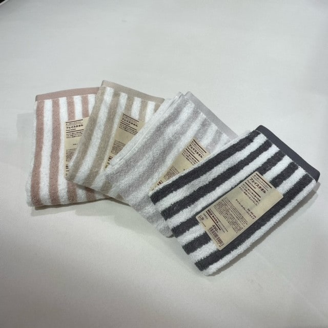サイズは、ハンドタオル、フェイスタオル、バスタオルの3サイズ展開になっております。