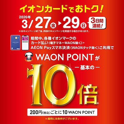 【イオンモール宮崎】WAONPOINT10倍がやってくる~! 2026/03/13