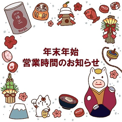【イオンモール新発田】年末年始の営業時間のお知らせ
