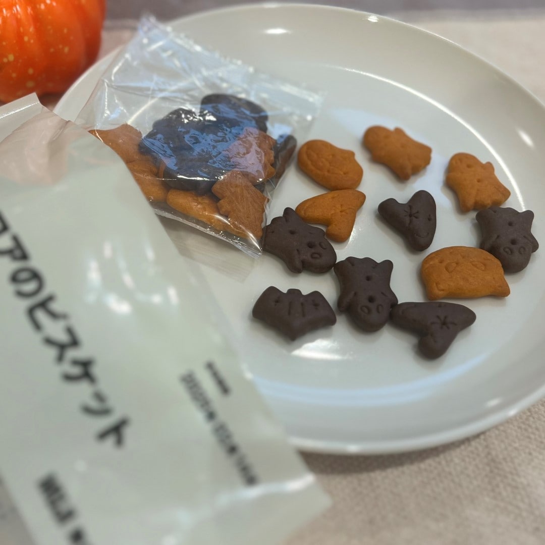 季節限定のかぼちゃ味とココア味のビスケットです。