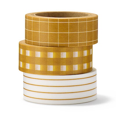 ラッピングや手帳デコレーションとしても使えるマスキングテープのセットです。赤系、青系、黄色系の3種類あります。