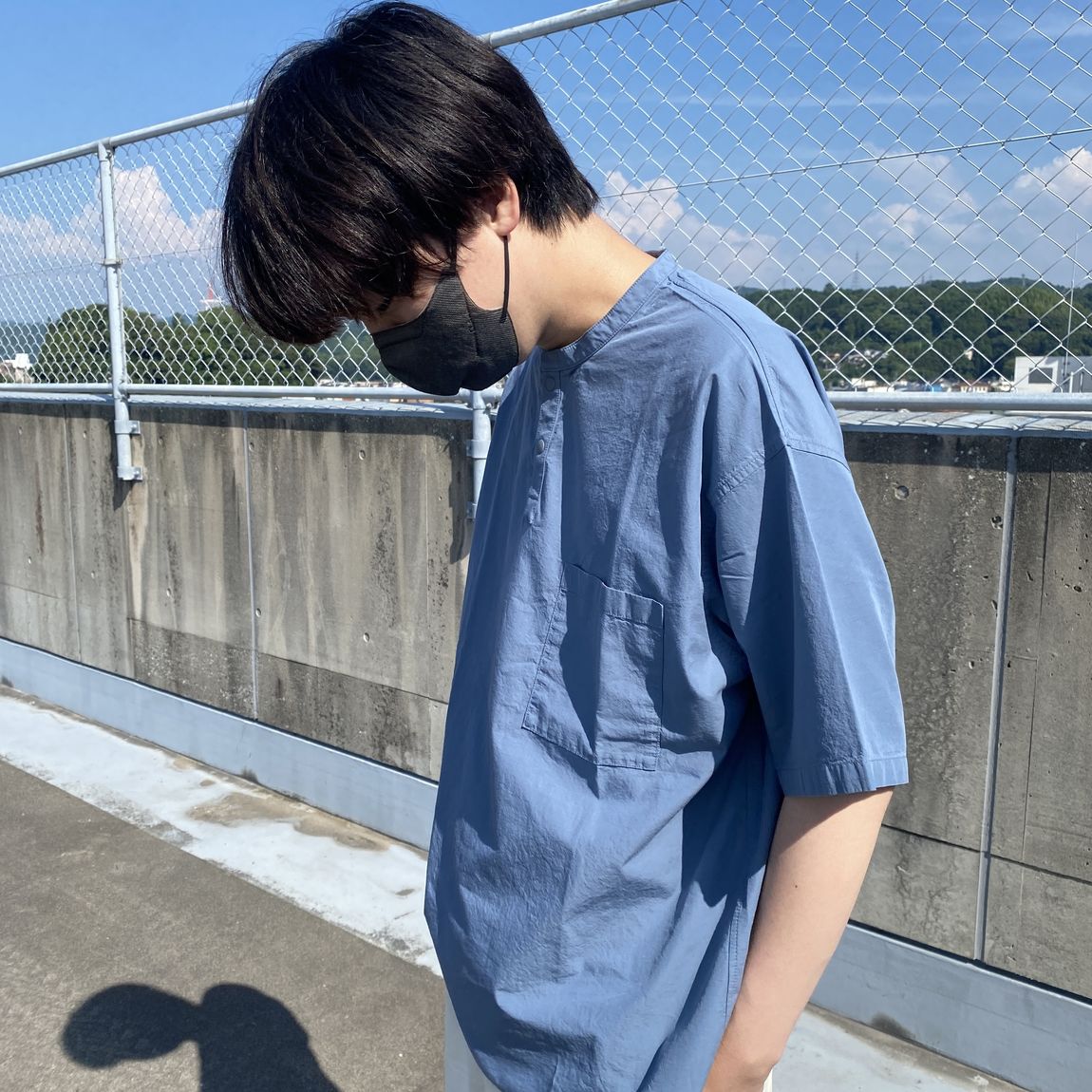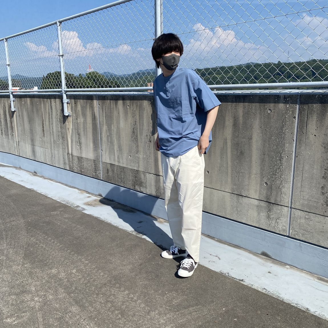 暑い夏でも爽やかさを感じられるようなスモーキーブルーを取り入れたコーデです。