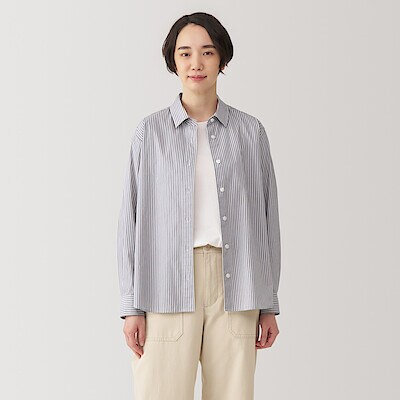 さらりとした着心地のTシャツを無印の綿シャツをたすき掛けにしてアクセントに〇