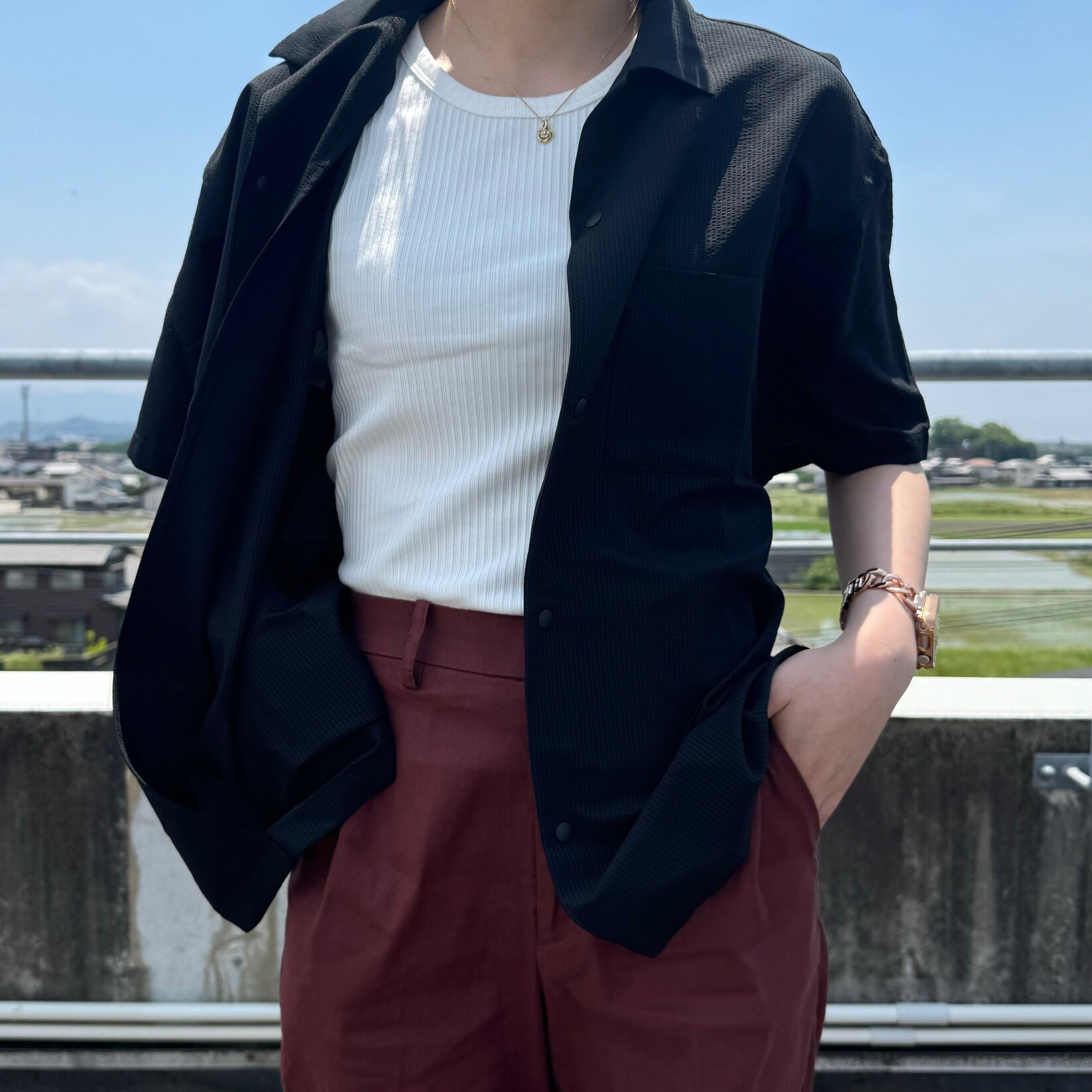 ヘンプのパンツに風を通すシャツを合わせ夏らしいコーデを組んでみました。