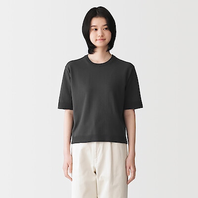 UVカット 強撚コットン 五分袖セーター