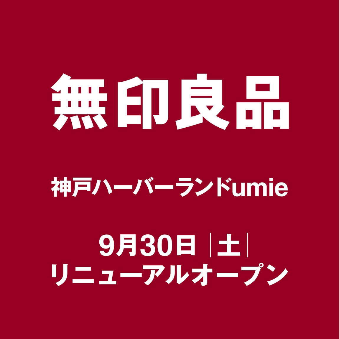 【無印良品 神戸ハーバーランドumie】9月30日(土)リニューアルオープン