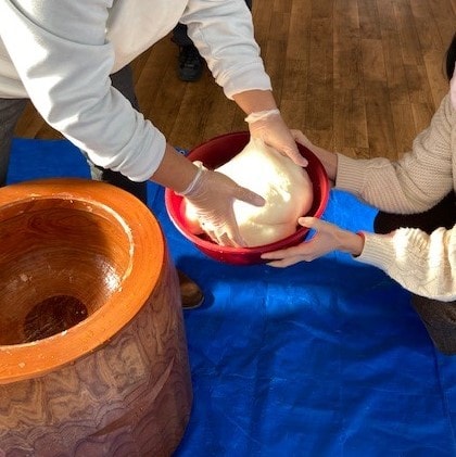 お子様からおじさまで、みんなが楽しんで餅つきを体験。
