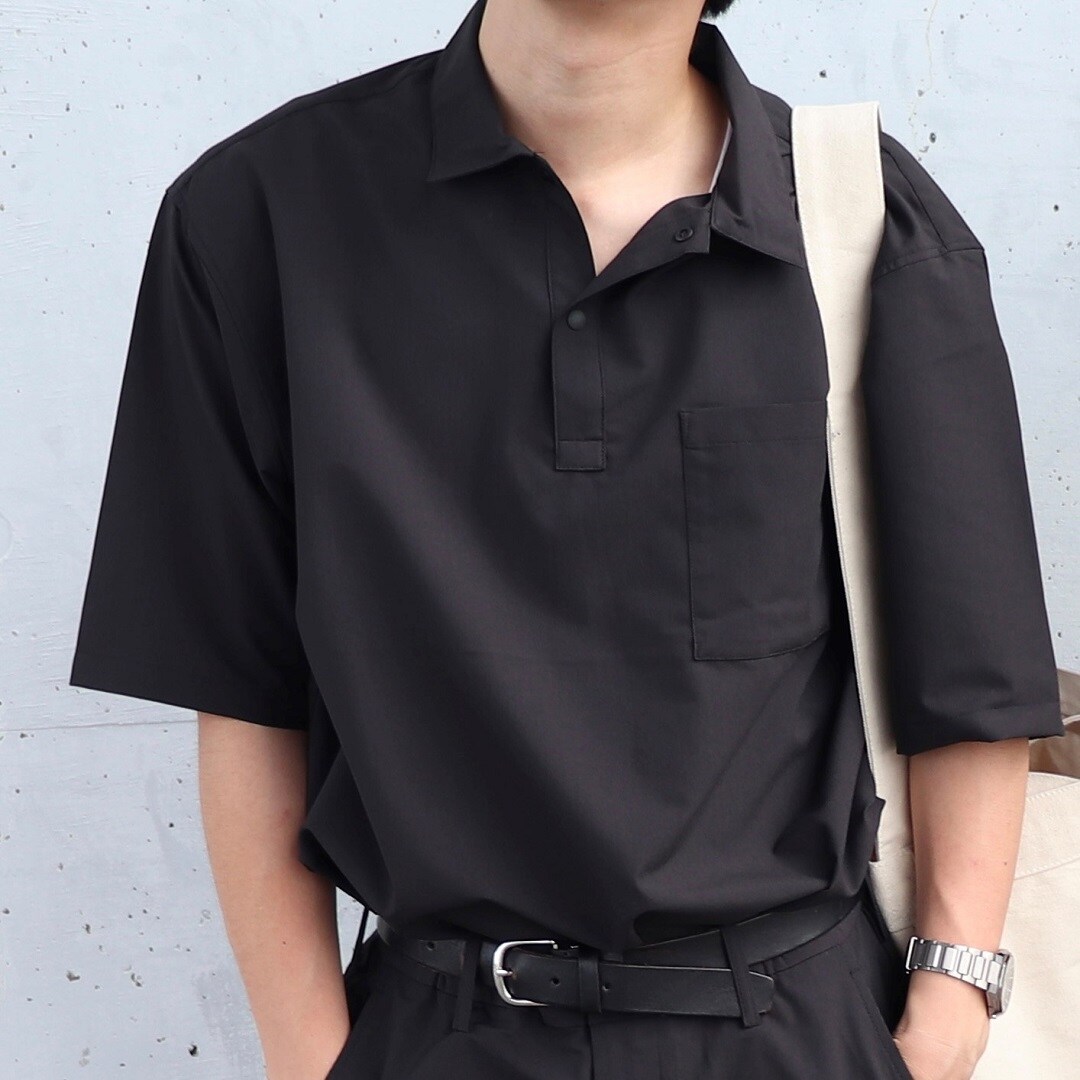 ・風を通す ワイド五分袖布帛ポロシャツ