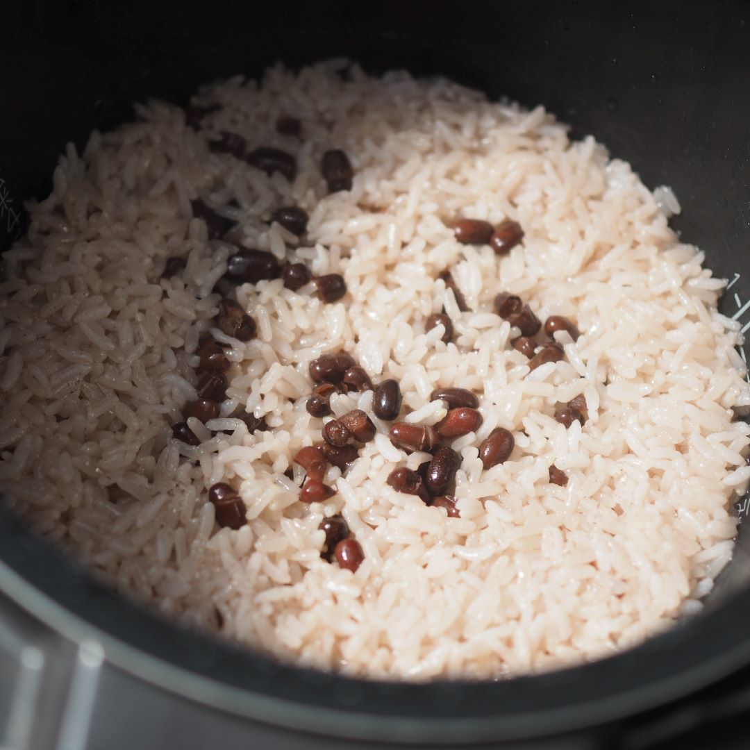 おこわ米を軽く研いで、白米と同じ水加減にして
