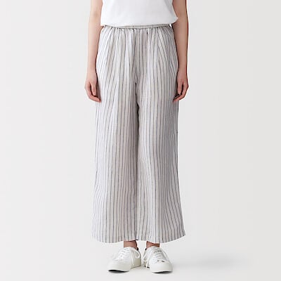 商品名:婦人 リネン 洗いざらしイージーワイドパンツ
