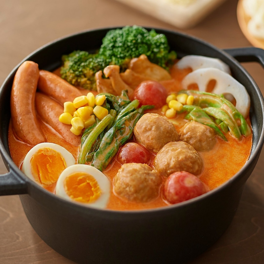 本格的なインドカレーでありながらも、バターや牛乳のコクがあり子どもから大人まで楽しめる味わいのスープです。ごはん+チーズでチーズリゾットにするのも良いですし、私はうどんを加えてカレーうどん風のしめをおすすめします!