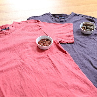 天然染料でオーガニックコットンのシャツや小物などを染めています。