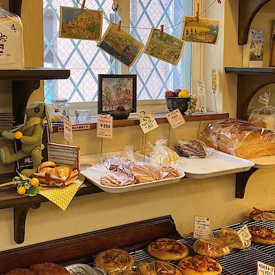 三角屋根が特長の夫婦で営むパン屋。店名は家の屋根にヤドリギ(gui)がなると幸福が訪れるという由来から。国産牛すじ肉を長時間煮込んだカレーパンはすぐに売切れるほど人気です。