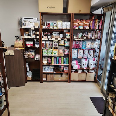 三宮駅から徒歩約7分の神戸クアハウス前に実店舗があります。犬と猫のご飯を中心に、手作りご飯の販売からドライフードやおやつを取り扱い、お悩みにあわせてオススメしております。飼い主様と共に愛犬、愛猫のサポートをいたします。