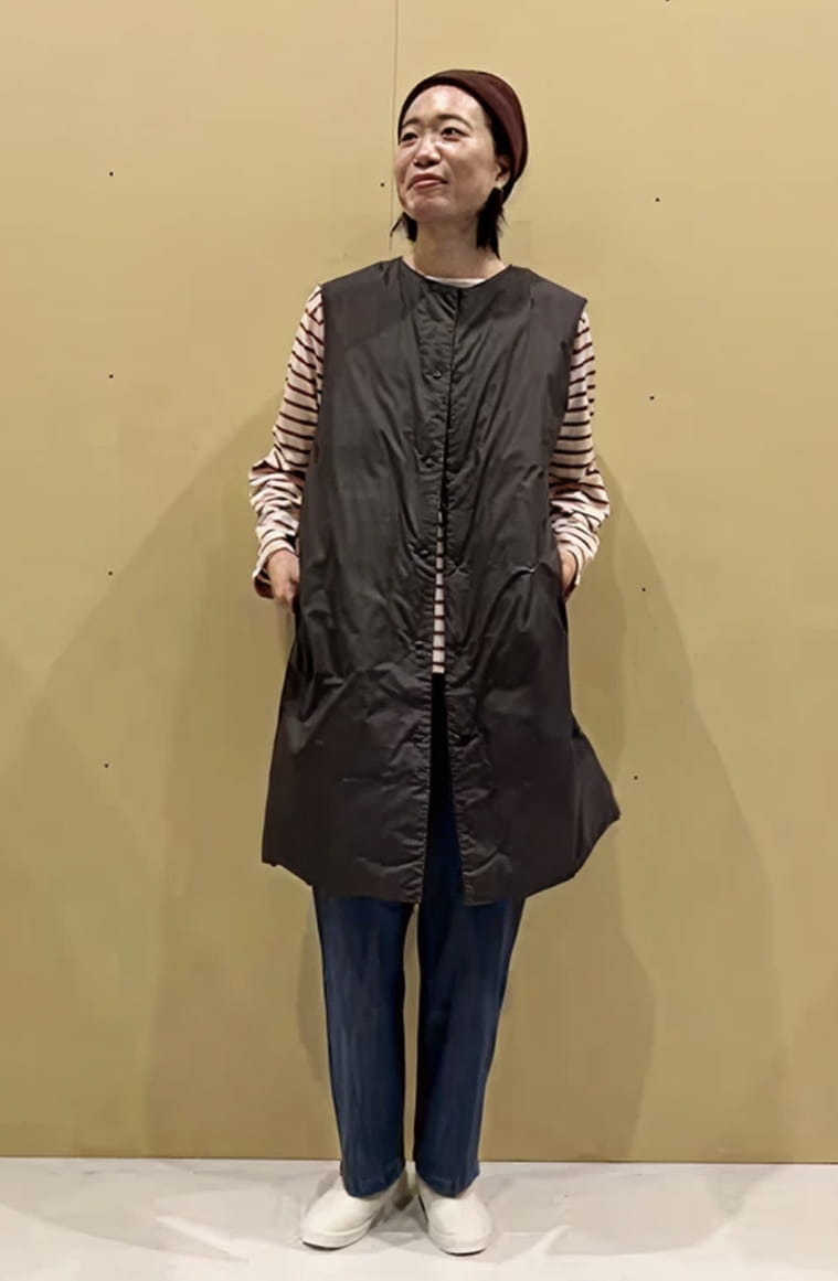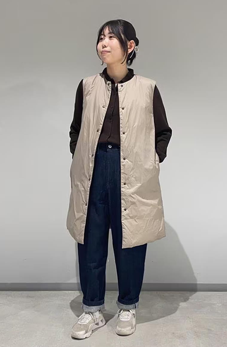 婦人 軽量ダウンポケッタブルノーカラーベスト