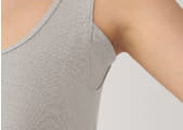 ブラジャーのストラップが出ないよう肩周りのデザインを見直しました。パッドが脇にフィットするアームホールのかたちで、しっかり汗を吸収し、服への汗染みを防ぎます。