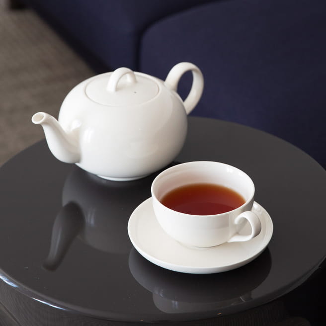 普段使いでも、ちょっとしたフォーマルな場でも使えるくせのない定番のかたち。取っ手部分は親指と人差し指がバランス良くおさまるデザインになっており、持ちやすく安定感があります。ティーポットは丸みのある独特のフォルムが特長で、集いの場でも便利な700mlのたっぷり容量です。