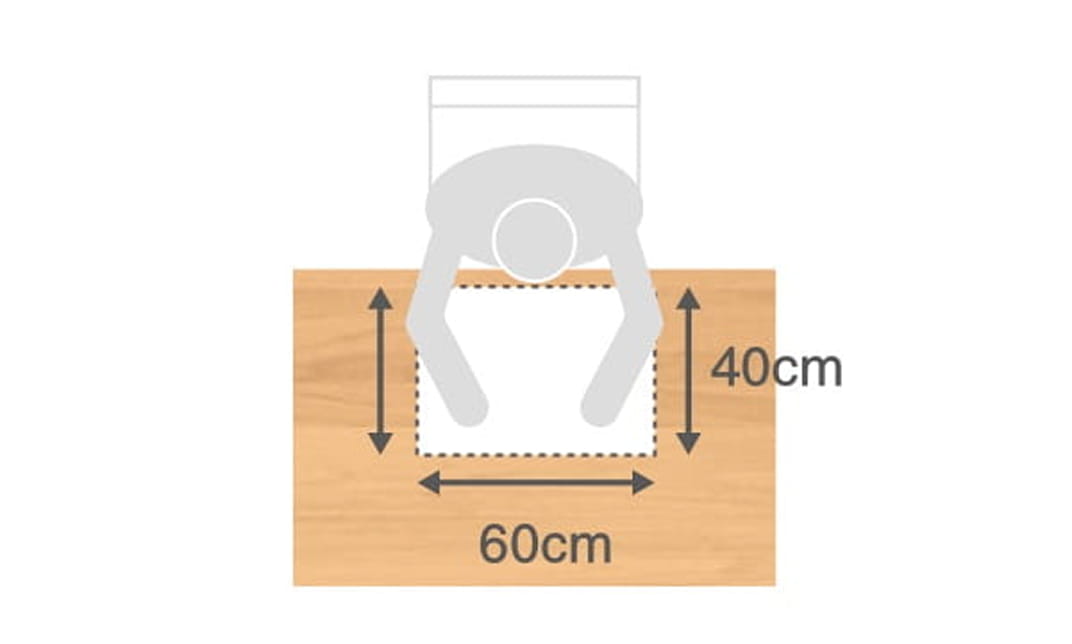 ダイニングテーブルで食事をする際には、最低でも1人当たり「幅60cm×奥行40cm」のサイズが必要となります。ランチョンマットを広げても余裕があるほどの広さが理想的です。