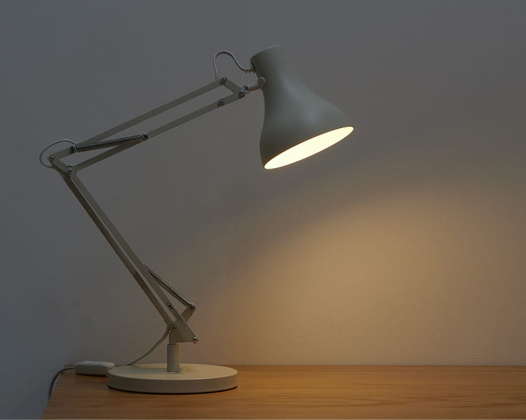 アームの可動範囲が広く、照らす角度の調節がしやすいデスクライトです。置いて使用できるタイプと、クランク付きタイプの2種類があります。