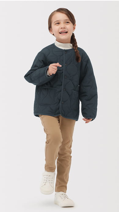 - 中わたが空気を含み、軽くてあたたかなアウター
