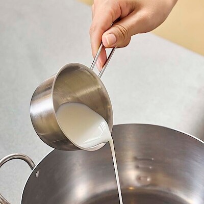 どこからでも、きれいに注げる。ステンレス 計量カップ