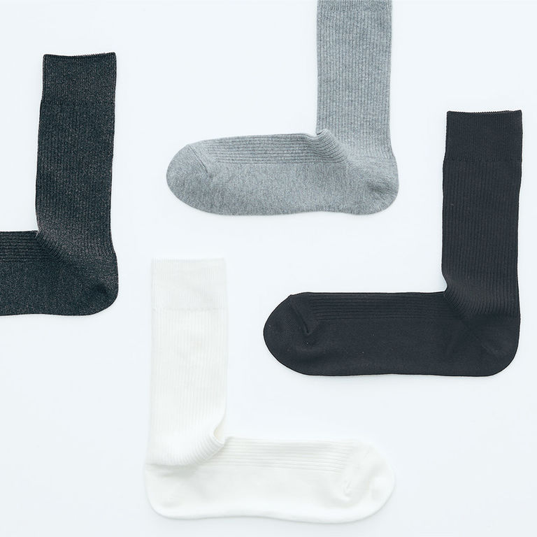 2006年、3アイテムから始まり、いまでは、無印良品のすべての靴下で、かかとが直角になりました。その間も、より快適なはき心地のために素材や仕様の改良を続けています。