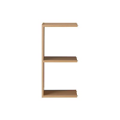 オープン収納のため出し入れしやすく、圧迫感がないスタッキングシェルフは、リビングのメイン収納にもぴったり。追加で棚を組み合わせることも可能で収納力が高いので、リビング収納が少ない家にもおすすめです。ファイルボックスやラタンボックスなど、無印良品の収納用品と規格を合わせてつくられているため、組み合わせればより使い勝手がよくなります。
