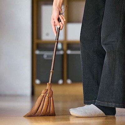 小回りが利く長さ、しなやかな掃き心地。シュロのほうき